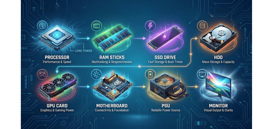 Start by defining what you’ll use the computer for. If your primary tasks include browsing, office applications, or study work, an entry-level setup will be enough. However, if you plan to play modern games, design graphics, edit videos, or run heavy software, you’ll need a more powerful configuration with a stronger processor and graphics card.
